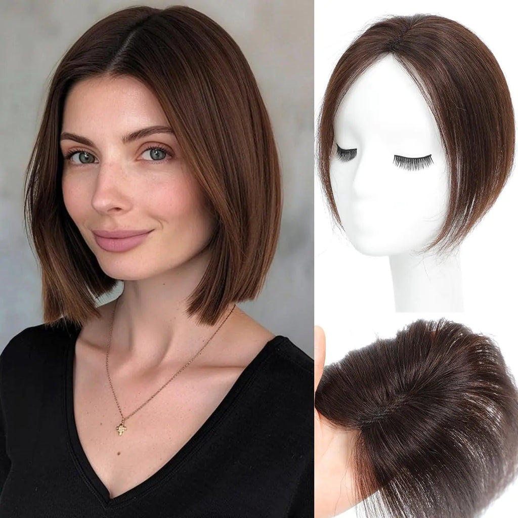 forfeels Hair Toppers For Women Clip In Bangs Mocha Brown Human Hair Topper 360° Cover 9.8" Wiglets Hairpieces For Thinning Hair Toppers Hair Pieces For Women